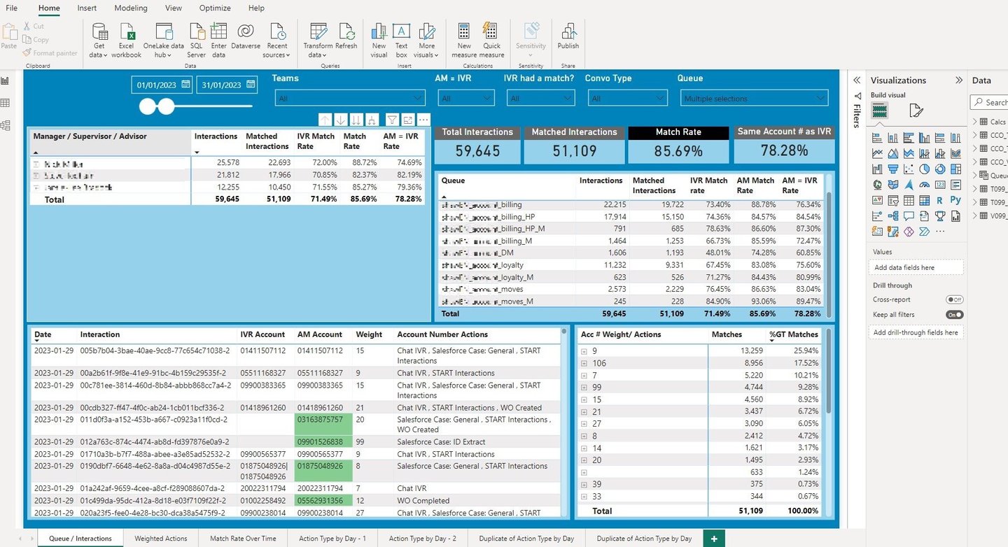 This project is the creation of a model aimed at increasing our ability to identify the account of every customer on every interaction via phone or chat. It involved providing a best possible of an account number based on the account the conducted by the customer service representative during the call. This project allowed the business to better understand who was calling them in many ways; It became a computational engine that powered other projects such as